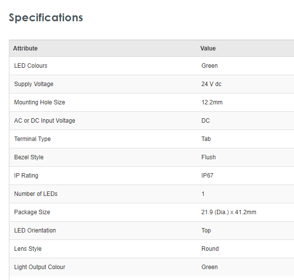 Bulgin IP67 Panel Mount LED Indicator, 24 V DC - Colour(s):Green - DX 0506/GN/24