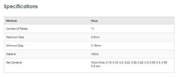 Dormer HSCo 0.15 → 0.5 mm 11 piece Miniature Drill Bit Set-HSS (HIGH SPEED STEEL)-New - Brand new item, still in OEM packaging  - Check out the images for more product details Product details: Product Details Dormer Miniature 11 Piece...View more
