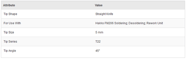 Hakko 5mm Straight Knife Soldering Iron Tip - T22-K