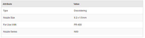 Hakko N60-09 6.2 x 1.5mm Soldering Iron Tip for use with FR-400 - New - Brand new item, still in OEM packaging  - Check out the images for more product details Product details:- N60 Series NozzlesThese N60 Series Nozzles are...View more