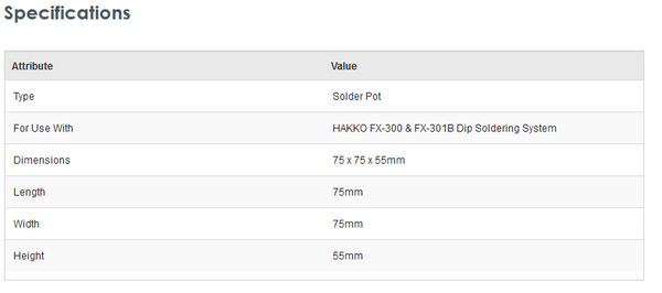 Hakko Solder Pot, 75 x 75 x 55mm for use with HAKKO FX-300 & FX-301B - A1518