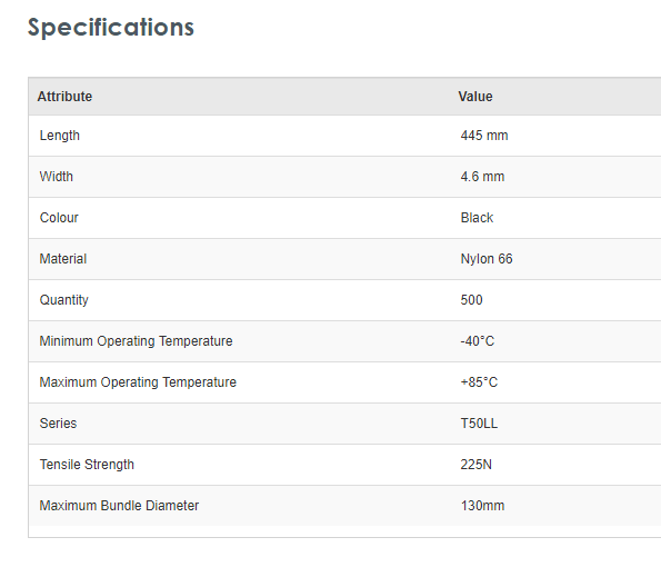 Hellermann Tyton 111-06002 Black Nylon Cable Tie, 445mm x 4.6 mm, T50LL Series ( 1 Bag of 500 pcs) - Brand new item, still in OEM packaging  - Check out the images for more product details Product details Standard cable...View more