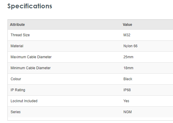 HellermannTyton NGM32-BLK M32 Black Nylon, IP68 Cable Gland With Locknut (1 Bag of 5) - Brand new item, still in OEM packaging  - Check out the images for more product details Product details Nylon cable gland with an IP68 rating...View more