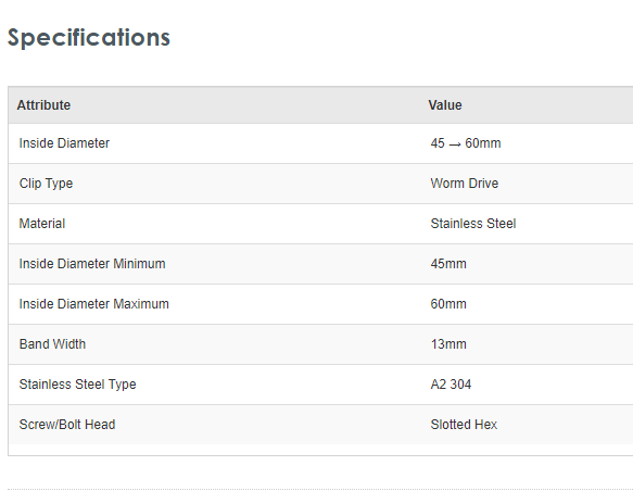 HI-GRIP Stainless Steel Slotted Hex Hose Clip Worm Drive 13mm Band Width HGS60BP