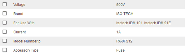 ISO-TECH PA-0FS12 Multimeter Fuse, 1A 500V, For Use With Isotech IDM 101, Isotech IDM 91E - New - Brand new item, still in OEM packaging  - Check out the images for more product details Product details:- ISO-TECH FusesFuses recommended for the...View more
