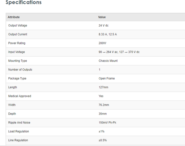 Mean Well RPS-300-24 200W Embedded Switch Mode Power Supply SMPS, 8.33 A, 12.5 A, 24V dc Medical Approved - Brand new item, still in OEM packaging  - Check out the images for more product details Product details The RPS-300 is...View more