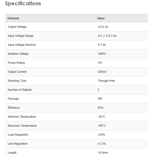 Murata NMH0512SC Power Solutions NMH 2W Isolated DC-DC Converter Through Hole, Vin 4.5 → 5.5 V dc, Vout ±12V dc - Brand new item, still in OEM packaging  - Check out the images for more product details Product details High...View more