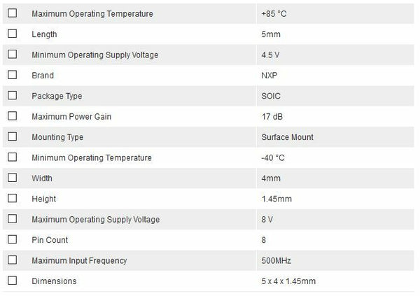NXP SA602AD/01,112 Up-Down Converter & Mixer Circuit Gain=17 dB 4.5 → 8 V 8-Pin SOIC - New - Brand new item, still in OEM packaging  - Check out the images for more product details Product details:- - RF Mixers Low...View more