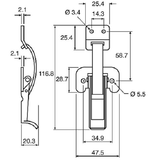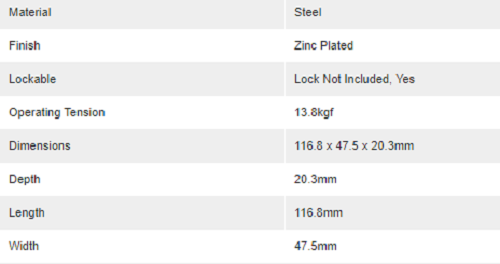 Pinet 16-A-3994 Steel Zinc Plated Toggle Latch,Lockable, Lock not included, 13.8kgf Op.Tension, 116.8 x 47.5 x 20.3mm -Brand new item, still in OEM packaging  -Check out the images for more product details Product details: Staple Lock Latch - Latch can...View more