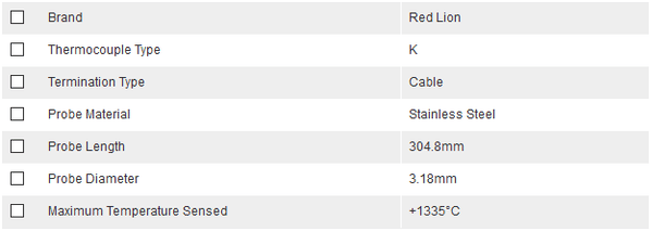 Red Lion Type K Temperature Probe 304.8mm Length, 3.18mm Diameter - TMPKQD05