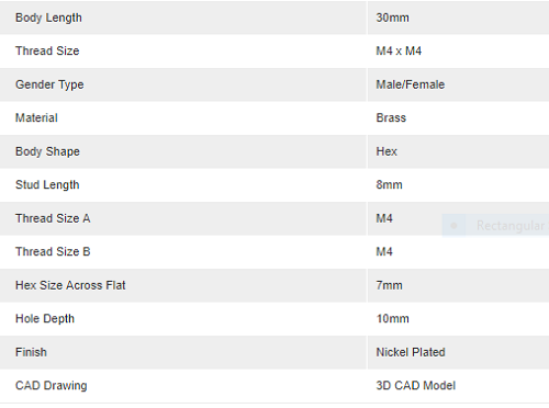 Richco HTSBG-M4-30-7-2 Brass Hex Threaded Standoff Male/Female, 30mm, M4 x M4: 50PCS PER PACK - Brand new item, still in OEM packaging  - Check out the images for more product details Product details: Metric Threaded Non-Insulating Spacers - Nickel Plated...View more