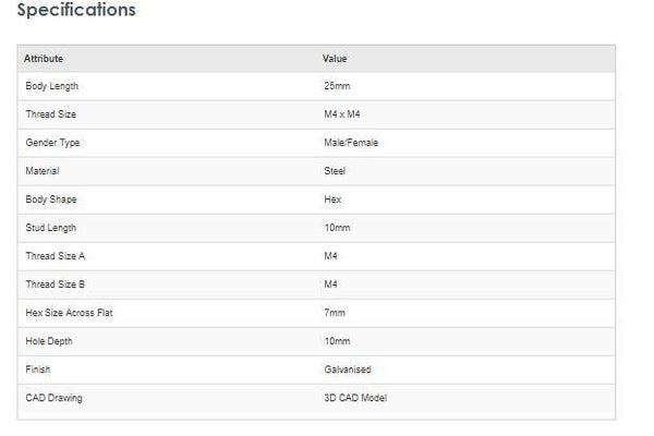RICHCO Steel Hex Threaded Standoff Male/Female, 25mm M4 X M4 - HTSM-M4-25-7-2