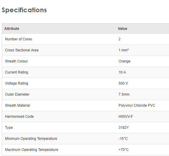 RS Pro 1-3182Y1-0 2 Core 1 mm² Mains Power Cable, Orange Polyvinyl Chloride PVC Sheath 100m, 10 A 500 V, 3182Y H05VV-F (1 Reel of 100 Metres) - Brand new item, still in OEM packaging  - Check out the images...View more