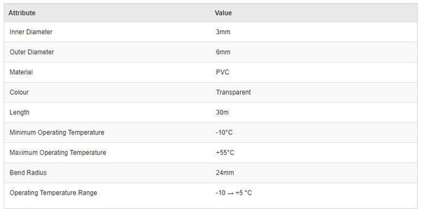 RS Pro 2931990 -  PVC Flexible Tube, transparent, 6mm External Diameter, 3mm Internal Diameter, 30 meters Per Reel 24 mm Bend Radius  -Brand new item, still in OEM packaging  -Check out the images for more product details Product details: A versatile,...View more