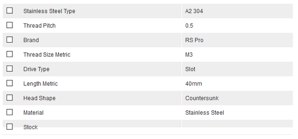 RS PRO 73181552, M3 Countersunk Head, 40mm Stainless Steel Slot A2 304  - New- (pack of 100pcs)   - Brand new item, still in OEM packaging - Check out the images for more product details   Product details: Metric Thread...View more
