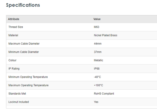 RS Pro CBG-M63 M63 Metallic Nickel Plated Brass, IP68 Cable Gland With Locknut - Brand new item, still in OEM packaging  - Check out the images for more product details Product details Nickel plated brass cable glands with either metric...View more