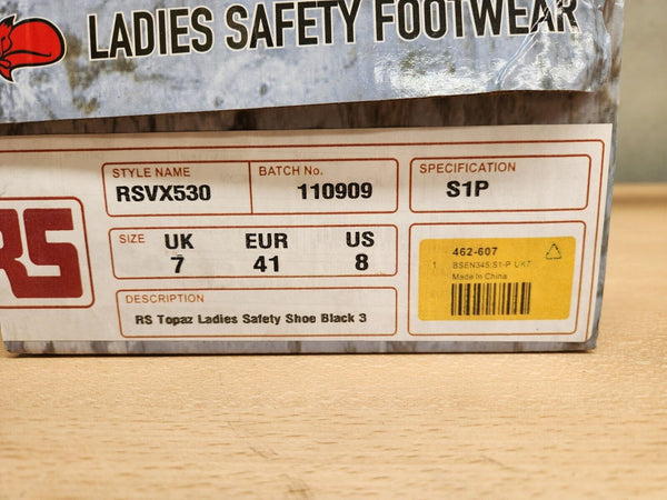 RS Pro Topaz Safety Shoes -AU 9, Women Steel Toe Cap, Black RS Stock No: 462-607