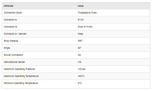 SMC Elbow Connector, R 3/8 Male, Push In 8 mm - KGL08-03S
