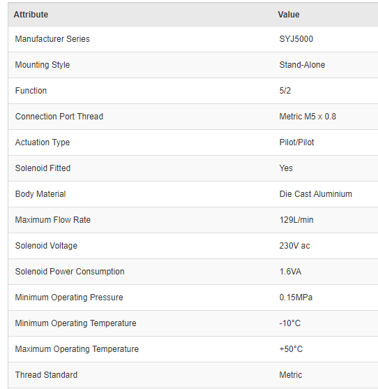 SMC SYJ5120-4DZ-M5-Q Metric M5 x 0.8 5/2 Pilot/Pilot Stand-Alone Pneumatic Control Valve, 129L/min - Brand new item, still in OEM packaging  - Check out the images for more product details Product details The SYJ series of valves have low power...View more