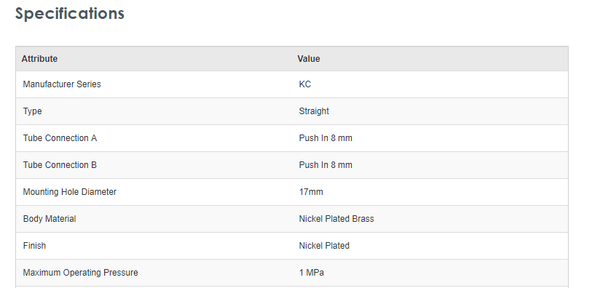 SMC KCE08-00 Pneumatic Bulkhead Tube-to-Tube Adapter Straight Push In 8 mm to Push In 8 mm - Brand new item, still in OEM packaging  - Check out the images for more product details Product details Self-seal mechanism prevents air exhaust...View more