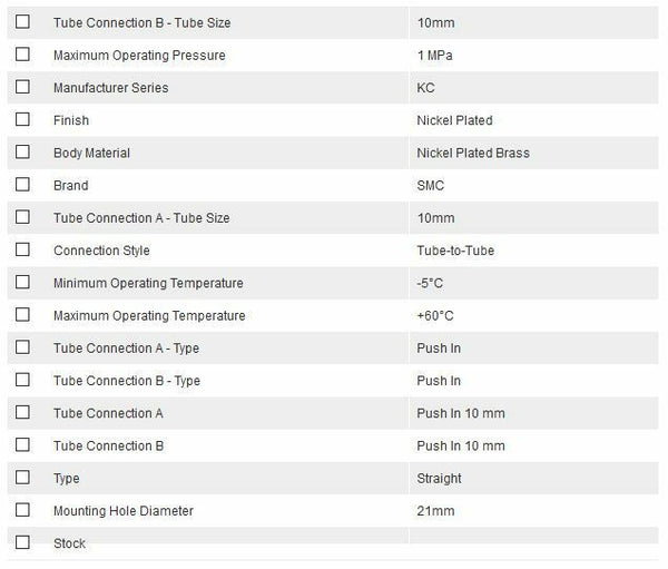 SMC KCE10-00 Pneumatic Bulkhead Tube-to-Tube Adapter Straight Push In 10 mm to Push In 10 mm - Brand new item, still in OEM packaging  - Check out the images for more product details Product details:- Self Seal ConnectorBulkhead Adaptors and...View more