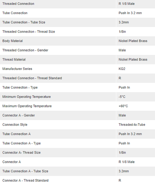 SMC Pneumatic Straight Threaded-to-Tube Adapter, R 1/8 Male, Push In 3.2 mm - New In Box - Brand new item, still in OEM packaging  - Check out the images for more product details Product Details: Male Connector KQ2H The KQ2H...View more