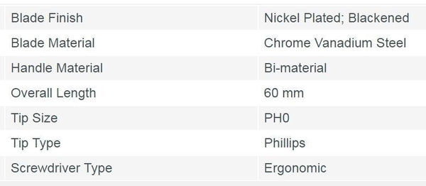 Stanley Works 65-157 Size #0 x 60mm   - chrome Vanadium Steel Ergonomic Screwdriver, Phillips PH - Brand New, unused, still in OEM packaging - Check out the images for more product details Product details Manufacturer: Stanley Works Manufacturer Part Number:...View more