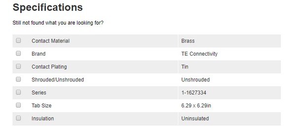 TE Connectivity 1-1627334 Series Crimp Tab Terminal, 6.29 x 6.29in Tin Plated - Brand new item, still in OEM packaging  - Check out the images for more product details Product details Faston 250 Quick Disconnect PCB Mount Tabs - Utilux...View more