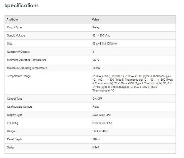 P.M.A KS40 PID Temperature Controller, 96 x 48 (1/8 DIN)mm, 3 Output Relay, 90 → 250 V ac Supply Voltage ON/OFF-New - Brand new item, still in OEM packaging  - Check out the images for more product details Product details:...View more