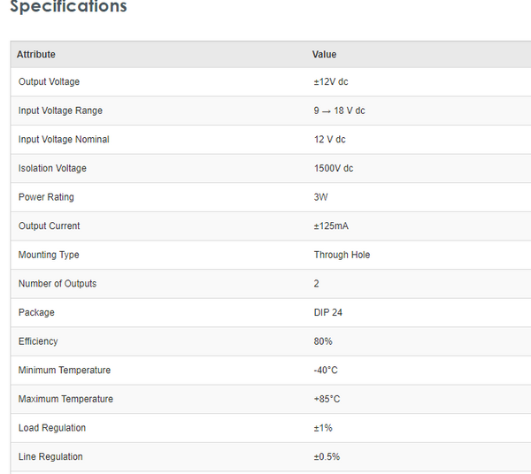TRACOPOWER TEL 3 3W Isolated DC-DC Converter Through Hole, Vin 9 → 18 V dc, Vout ±12V dc - Brand new item, still in OEM packaging  - Check out the images for more product details Product details The Traco Power...View more