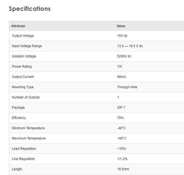 TRACOPOWER TMV 1515SHI ,TMV HI 1W Isolated DC-DC Converter Through Hole, Vin 13.5 → 16.5 V dc, Vout 15V dc - Brand new item, still in OEM packaging  - Check out the images for more product details Product details: The...View more