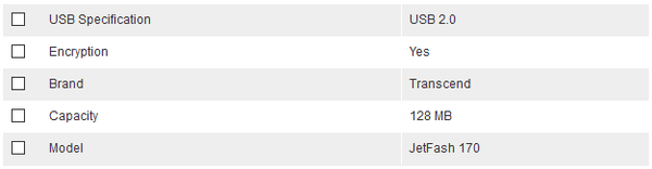 Transcend JetFash 170 128 MB Encrypted USB Stick - TS128MJF170
