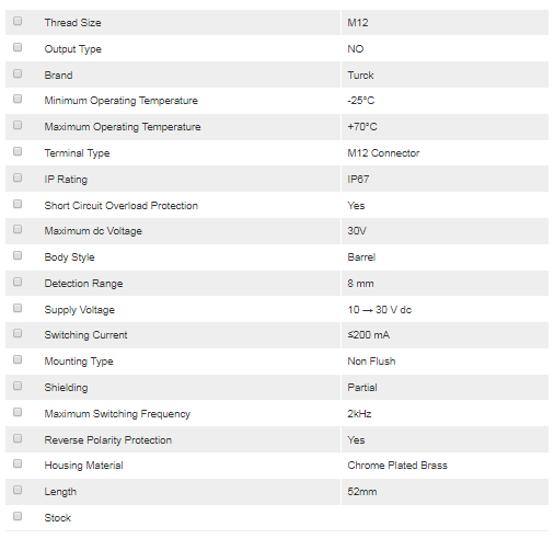 Turck NI 8-M12-AP6X-H1141, M12 Inductive Sensor NO Output, 8 mm Detection, IP67 - New - Brand new item, still in OEM packaging  - Check out the images for more product details Product details:- NI 8 Series The NI 8 Series...View more