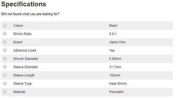 Alpha Wire Black Heat Tubing 31.7mm Sleeve Dia x 152mm Length - F62111/4 BK072