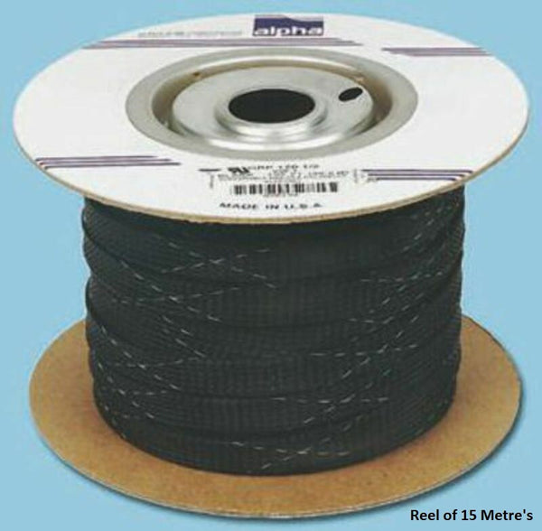 Alpha Wire Expandable Braided Polyester Wire - G11013/4 BK007         Black Expandable Braided Polyester Wire Sleeving | 15m Reel Product Highlights: Condition: Brand new, still in OEM packaging. Material: High-flexibility woven polyester for versatile applications. Construction: Open...View more