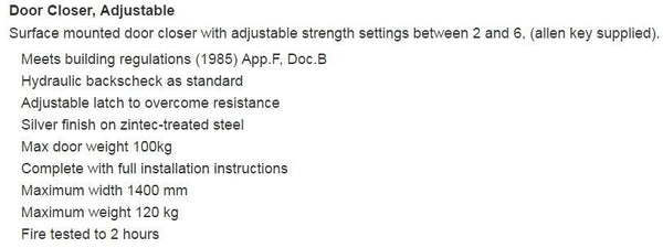 Briton Silver Fire Door Suitable Door Closer - New in Box