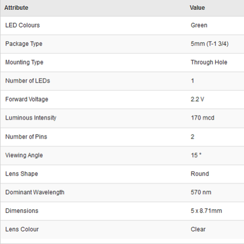 Broadcom 2.2 V Green LED 5mm Through Hole - HLMP-C515