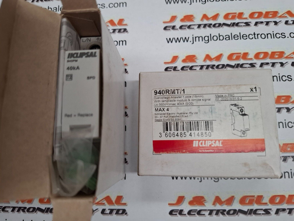 Clipsal 40kA 1 Pole Plug In Max 4 Surge Protection- 940RMT/1   -Brand new item, still in OEM packaging  -Check out the images for more product details   Product details Clipsal 940RMT/1 Max4 Series Surge Protection Device (SPD), Surge Arrestor,...View more