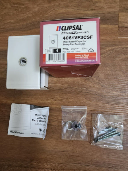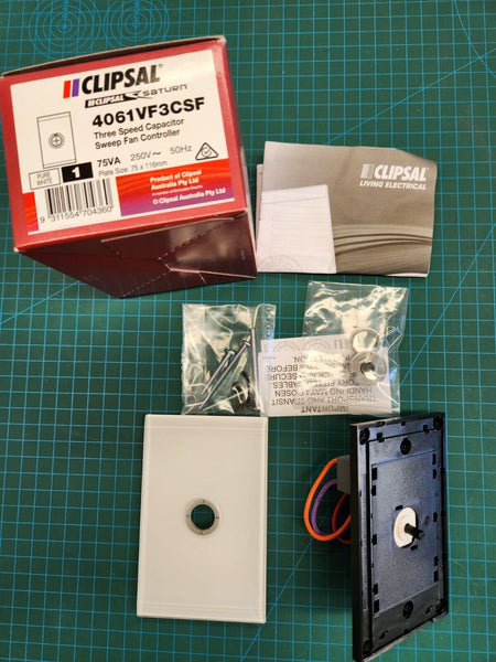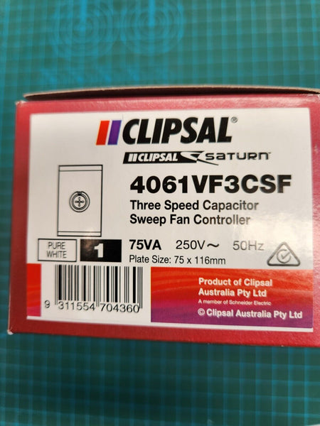 Clipsal SATURN 3 Speed Rotary Fan Controller Pure White - 4061VF3CSF-PW Clipsal SATURN 75VA Rotary Switch 3 Speed Fan Controller Pure White Brand Clipsal Part Number 4061VF3CSF-PW Also Known As CLI4061VF3CSF-PW Colour Pure White Series Clipsal Saturn Speed Control Type...View more