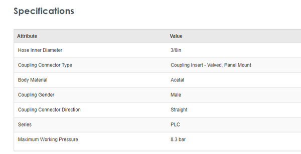 Colder Products PLCD42006 Straight Male Hose Coupling Coupling Insert - Valved, Panel Mount, Acetal - Brand new item, still in OEM packaging  - Check out the images for more product details Product details Coupling Insert Panel Mount Hose Barb Manufacturer: Colder...View more