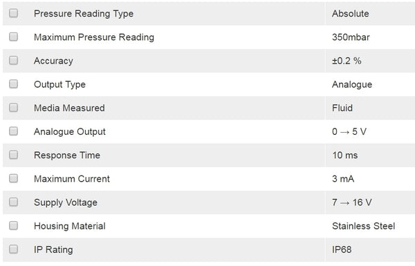 Druck Absolute Pressure Sensor for Fluid 350mbar Max Pressure - New in Box -Brand New, unused, still in OEM packaging -Check out the images for more product details Product details Manufacturer: Druck Manufacturer Part Number: A5074-TB-A1-CA-H1-PA 350 mbar A Product...View more