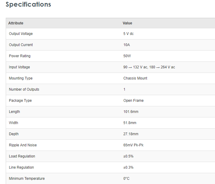 EOS 50W Embedded Switch Mode Power Supply SMPS, 10A, 5V DC - LFVLT60-1000