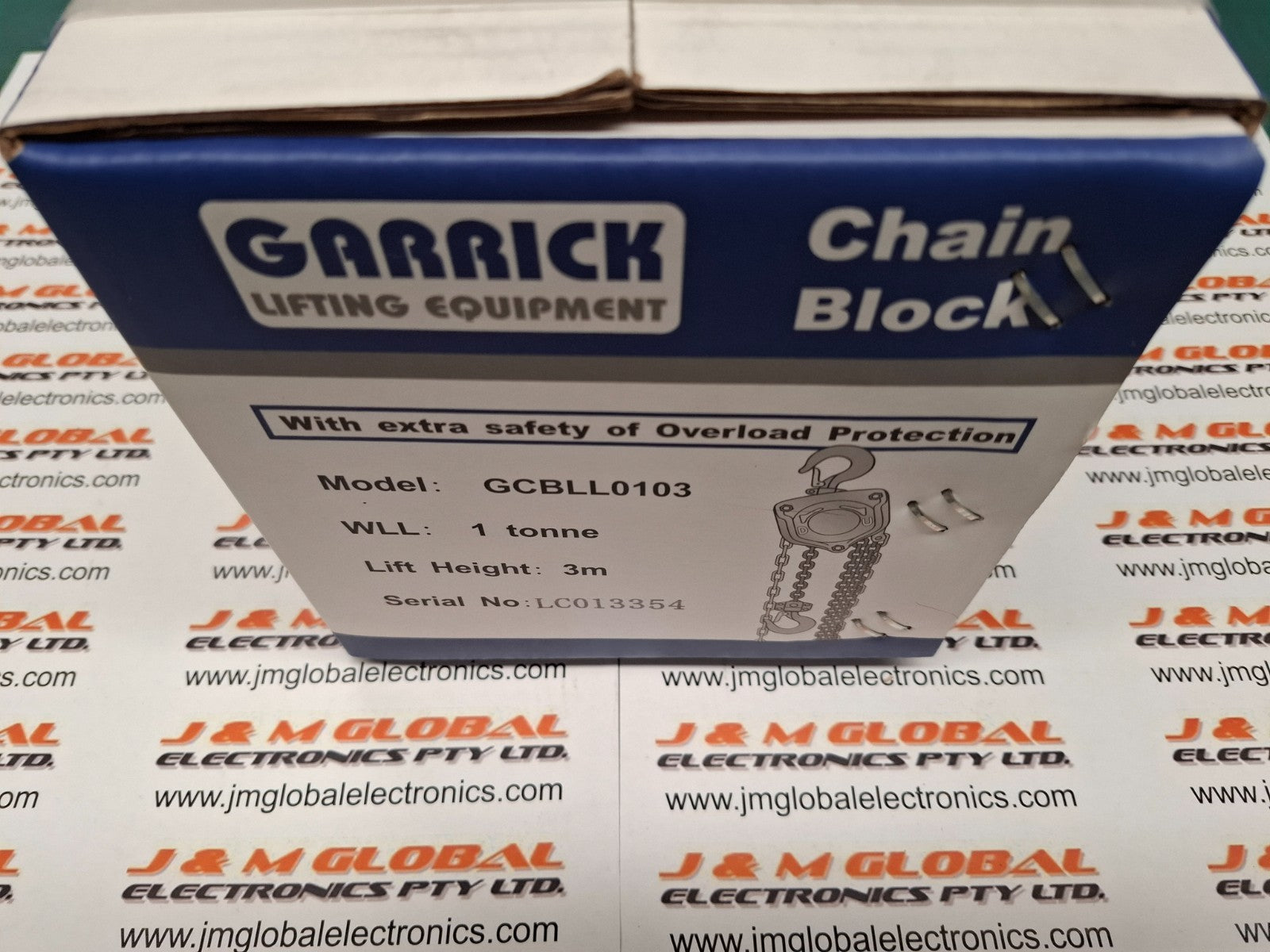 Garrick GCBLL0103 - Industrial Load Limited Chain Block Size: 1Tonne, Lift: 3 metres Size: 1T Lift: 3m Overload Protection facility is factory set to prevent abuse, damage or unsafe practice Robust all steel construction Super strength alloy steel chain All hooks...View more