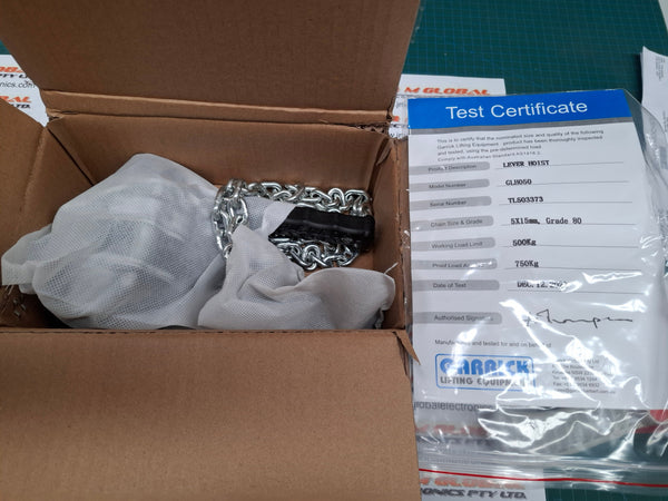 Garrick GLH050 - Mini Lever Hoist  Size: 0.5Tonne, Lift:1.5metres   Size: 0.5T Life: 1.5m Robust all steel construction Super strength alloy load chain - 1.5T, 3T & 6T models fitted with grade 100 chain All hooks fitted with spring safety...View more