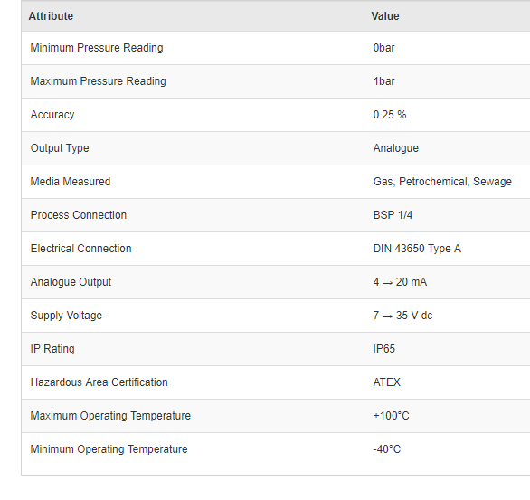 Gems Sensors 2215BGA1000ABUA001 ATEX Pressure Sensor, 1bar Max Pressure Reading , 7 - 35 V dc, BSP 1/4, IP65 - Brand new item, still in OEM packaging  - Check out the images for more product details Product details Designed for...View more