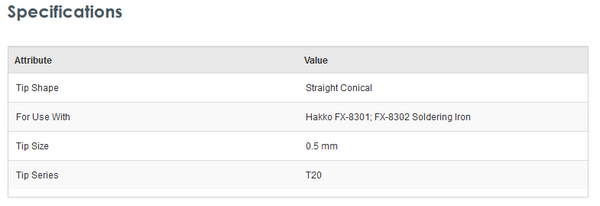 Hakko T20-B2 0.5 mm Straight Conical Soldering Iron Tip - New - Brand new item, still in OEM packaging  - Check out the images for more product details Product details:- T20 Series replacement tipsThe T20 soldering tip range from Hakko...View more