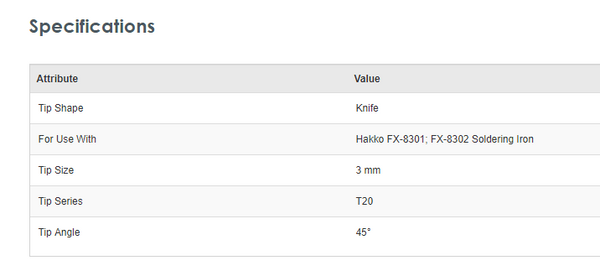 Hakko T20-KU 3 mm 45° Knife Soldering Iron Tip - Brand new item, still in OEM packaging  - Check out the images for more product details Product details: T20-KU Soldering Tip, 45 Deg Knife, 3 mm, T20 Series, Hakko FX-838 Soldering...View more