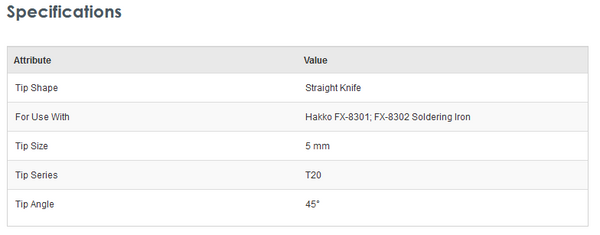 HAKKO T-20-K 5 mm Straight Knife Soldering Iron Tip - New - Brand new item, still in OEM packaging  - Check out the images for more product details Product details:- T20 Series replacement tips The T20 soldering tip range from...View more