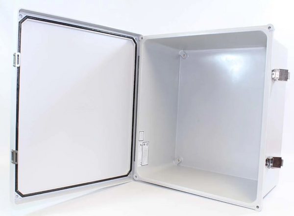 Hammond Fibreglass Reinforced PET Wall Box, IP66, 454 mm x 406 mm -  PJ16148L Key Features Material: Fibreglass Reinforced PET. Offers excellent strength and resistance to impact and harsh environments. Enclosure Type: Wall-mounted, ideal for secure installation in industrial and...View more
