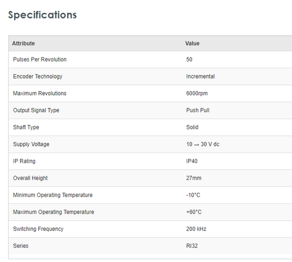 Hengstler RS32-0/50ER.11KB Incremental Encoder 50 ppr 6000rpm Solid 10 → 30 V dc - Brand new item, still in OEM packaging  - Check out the images for more product details Product details RI32 Miniature Low torque/high efficiency with ball bearings...View more